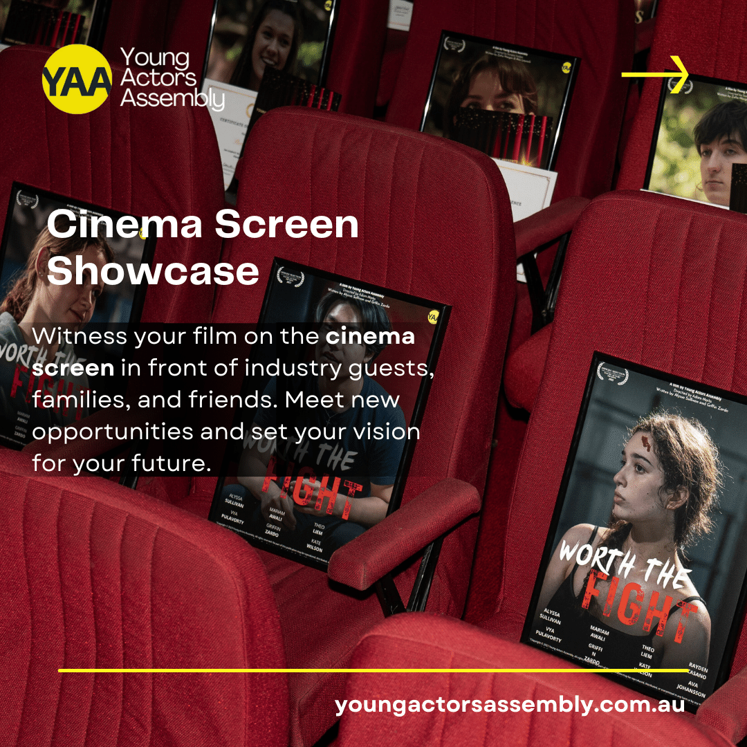 Career Building: An end-of-year Young Actors Awards cinema showcase, where students proudly walk the red carpet celebrating their achievements alongside industry professionals.